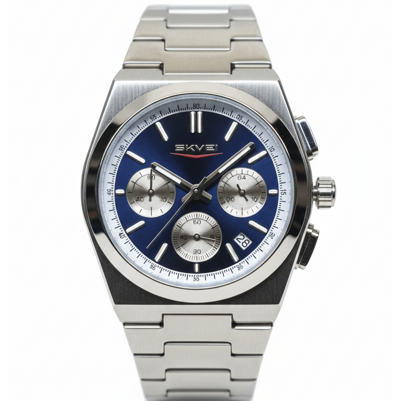 تجسد ساعة SKMEI الجديدة مزيجاً ساحراً بين العراقة الكلاسيكية وروح التصميم الحديث، مما يجعلها قطعة استثنائية في معصم الرجل الذي يقدر التفاصيل الدقيقة والجمال الهندسي. تأتي هذه الساعة الرجالية الفاخرة بهيكل متين مصنوع من المعدن، يلفت الأنظار فيها المينا الأزرق العميق ، وتتناغم بانسجام تام مع العقارب الفضية وثلاث عدسات فرعية تمنحها طابع الكرونوغراف الرياضي الأنيق، بالإضافة إلى نافذة التاريخ التي تضفي لمسة من العملية. يكتمل هذا التصميم بسوار مدمج من الفولاذ بتصميم الحلقات المتصلة التي توفر راحة تامة ومظهراً انسيابياً متصلاً بجسم الساعة. إنها الخيار الأمثل لمن يبحث عن ساعة تتألق في المناسبات الرسمية والاجتماعات الهامة، وفي الوقت ذاته تمنح إطلالتك اليومية فخامة لا تخطئها العين، مما يجعلها أيضاً فكرة مثالية لتقديمها كهدية فاخرة تعبر عن الذوق الرفيع والتقدير الصادق.