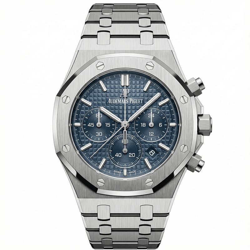تجسد ساعة أوديمار بيجيه رويال أوك كرونوغراف قمة الهندسة السويسرية والذوق الرفيع، فهي ليست مجرد أداة لمعرفة الوقت بل هي أيقونة خالدة تعكس مكانة مقتنيها. تأتي هذه الساعة الرجالية بتصميم يمزج ببراعة بين الروح الرياضية الحديثة والكلاسيكية الفاخرة، حيث يبرز هيكلها المصنوع من المعدن عالي الجودة . يتميز السوار المتصل بتصميمه الهندسي الفريد الذي ينساب بنعومة وتناغم، بينما يخطف المينا الأنظار بنقشة مربعة باللون الأزرق العميق، والتي تتجلى فيها تفاصيل الكرونوغراف الدقيقة ونافذة التاريخ المائلة بين الساعة الرابعة والخامسة، مما يضفي عمقاً جمالياً وبعداً تقنياً استثنائياً. إنها الخيار الأمثل للرجل الذي يبحث عن الفخامة في مناسباته الرسمية، والتميز في اجتماعاته الهامة، كما تعد هدية فاخرة لا تُنسى تعبر عن تقدير لا حدود له.