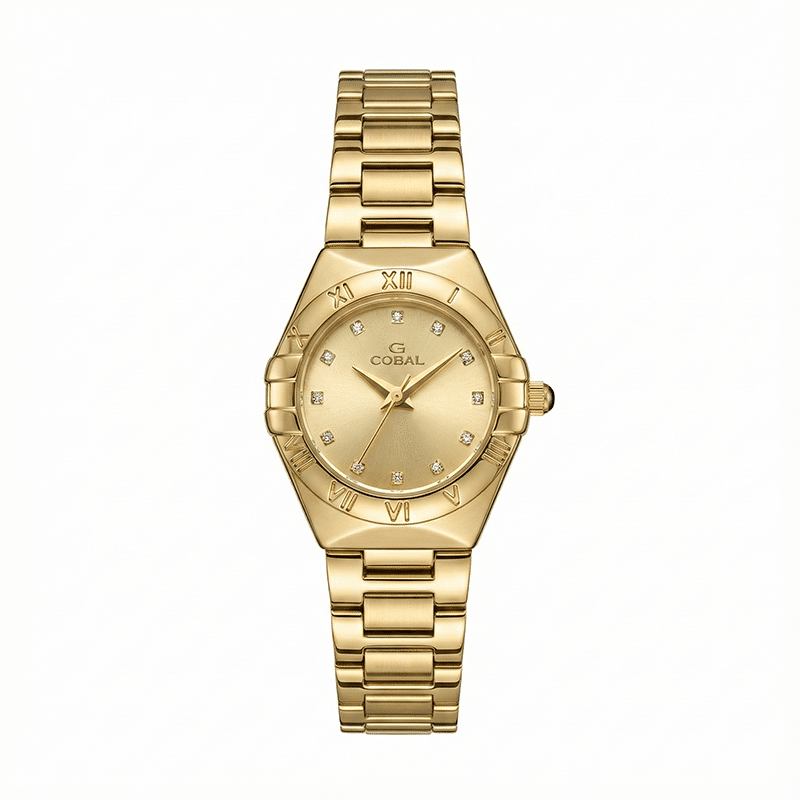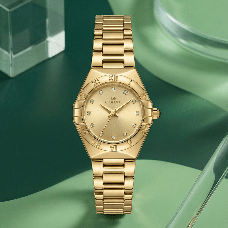 تجسد ساعة كورال ( CORAL) النسائية مزيجاً ساحراً بين الفخامة الكلاسيكية واللمسات العصرية المبتكرة،ا. صُممت هذه الساعة بدقة متناهية من المعدن المطلي باللون الذهبي البراق الذي يضفي هالة من الرقي على إطلالتك، ويأتي السوار المعدني بتصميم هندسي متقن يضمن الراحة والمتانة مع مظهر انسيابي جذاب. أكثر ما يميز هذه القطعة هو المينا الذهبي ذو اللمعان الهادئ، والمزين بفصوص الكريستال اللامعة التي تعمل كمؤشرات للساعات، يحيط بها إطار خارجي منقوش بالأرقام الرومانية العريقة ليمنحها طابعاً ملكياً لا يغيب عنه الزمن. إنها قطعة استثنائية صُممت لتكون رفيقتك في المناسبات الرسمية والاجتماعات الهامة، كما تعد خياراً مثالياً كهدية فاخرة تعبر عن ذوق رفيع وتقدير عميق، فهي تمنح من ترتديها ثقة مطلقة وتضفي لمسة نهائية من الأناقة على أي زي تختارينه.